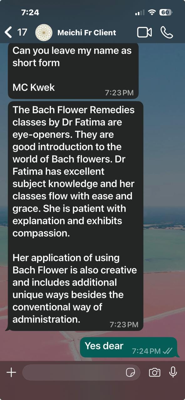 2. Medical Disclaimer (Important) The services and products provided by Dr. Fatima (Bach Flower Remedies) are for holistic emotional support and educational purposes only. They are NOT a substitute for professional medical advice, diagnosis, or treatment from a licensed doctor. If you have a serious medical condition, please consult your physician.